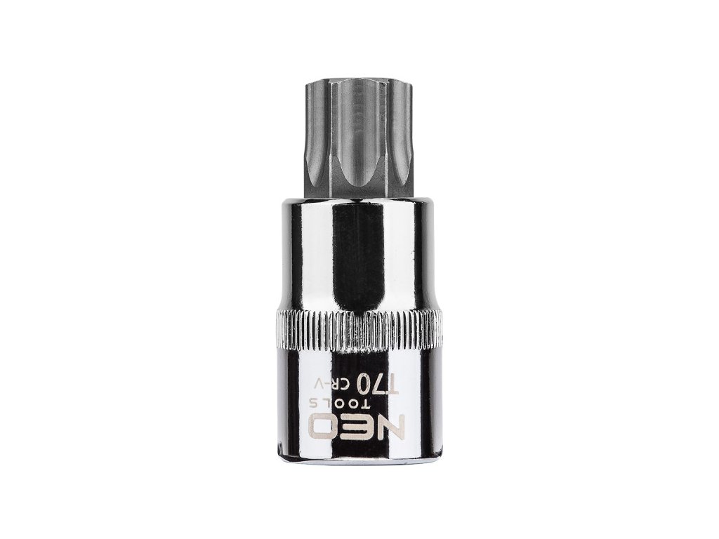 Bit Torx na 1/2" hlavici, T70 x 55 mm, certifikát TÜV M+T, záruka 25 let Nástrčný bit Torx 1/2" NEO s délkou 55 mm. Nástrčná hlavice vyrobena z odolné chrom-vanadiové oceli. Šestihranný šroubovací bit vyroben z vysoce kvalitní legované oceli S2. Kvalitu nářadí potvrzuje certifikát TÜV a záruka výrobce na 25 let. Značka NEO splňuje očekávání profesionálů.Obrázky jsou pouze ilustrativní.