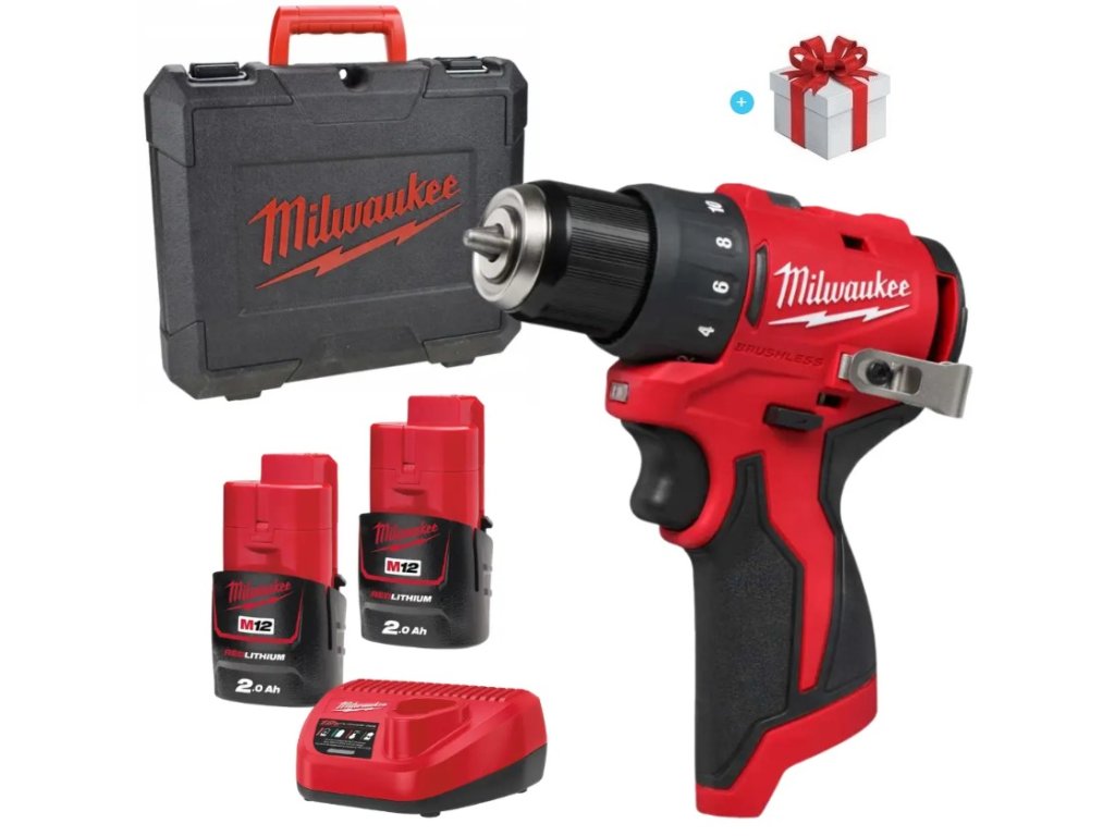 Aku bezuhlíkový vrtací šroubovák M12 BLDDRC-202C, MILWAUKEE (4933499686) + Sada bitů a vrtáků 48ks, SHOCKWAVE IMPACT DUTY, MILWAUKEE (4932492005) zdarma