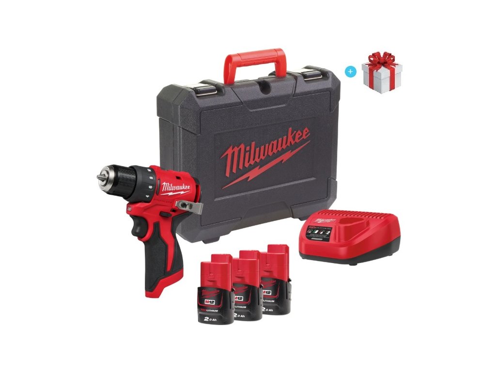 Aku bezuhlíkový vrtací šroubovák M12 BLDDRC-203C, MILWAUKEE (4933499685) + Sada bitů a vrtáků 48ks, SHOCKWAVE IMPACT DUTY, MILWAUKEE (4932492005) zdarma