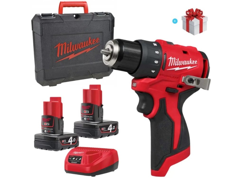 Aku bezuhlíkový vrtací šroubovák M12 BLDDRC-402C, MILWAUKEE (4933499688) + Sada bitů a vrtáků 48ks, SHOCKWAVE IMPACT DUTY, MILWAUKEE (4932492005) zdarma