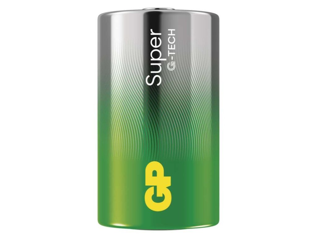 chemické složení: alkalické|hmotnost: 140 g|kapacita: neuvádí se|kategorie/řada: Super Alkaline|max. skladovatelnost: 10 let|možnost nabíjení: ne|napětí: 1,5 V|počet nabíjecích cyklů: nenabíjecí|prodejní obal: 2 ks, fólie|provozní teplota: -18 °C až +50 °C|rozměr: 34,2 × 61,5 mm|typ: LR20 (velké mono, D)|velikost baterie: D|značka: GPObrázky jsou pouze ilustrativní.