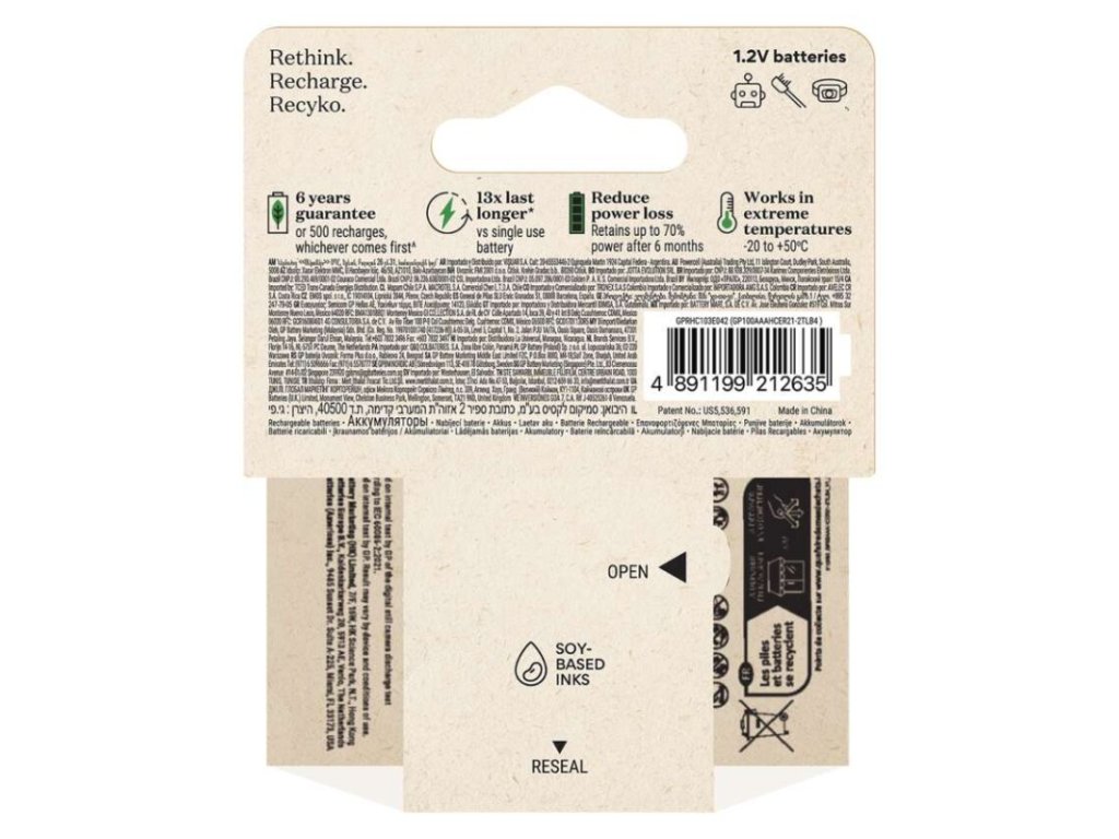 chemické složení: NiMH|hmotnost: 14,5 g|kapacita: 850 mAh|kategorie/řada: ReCyko|max. skladovatelnost: neuvádí se|možnost nabíjení: ano|napětí: 1,2 V|počet nabíjecích cyklů: více než 500|prodejní obal: 4 ks, papírová krabička|provozní teplota: -20 °C až +50 °C|rozměr: 10,5 × 44,5 mm|typ: HR03 (mikrotužka, AAA)|velikost baterie: AAA|značka: GPObrázky jsou pouze ilustrativní.