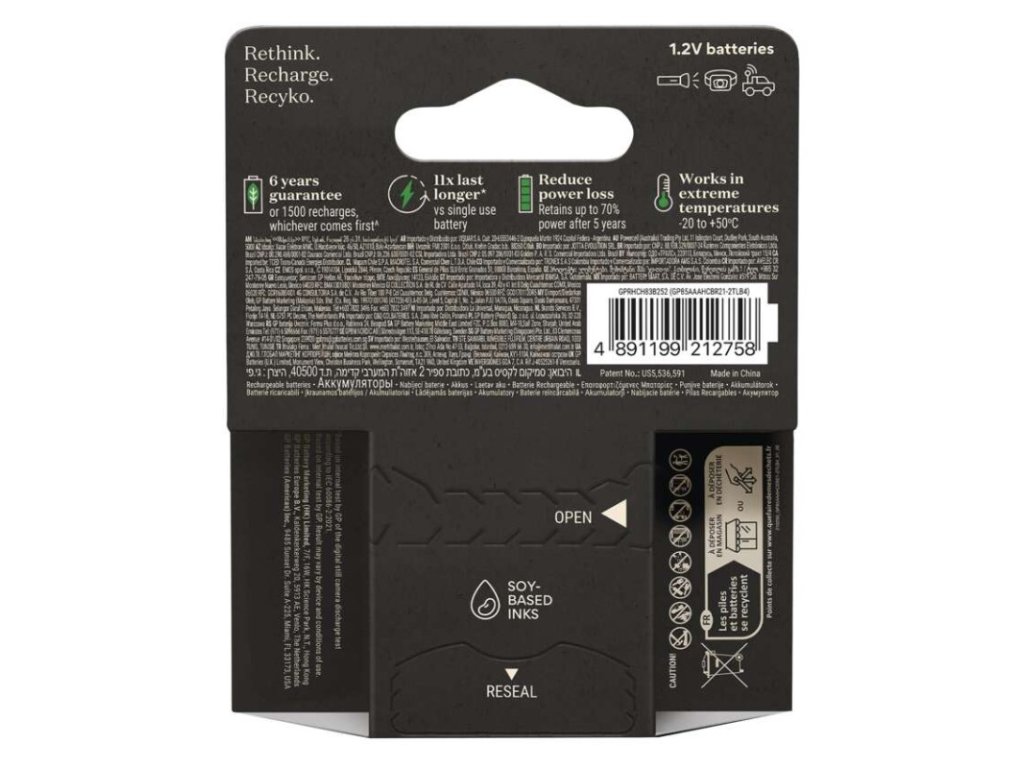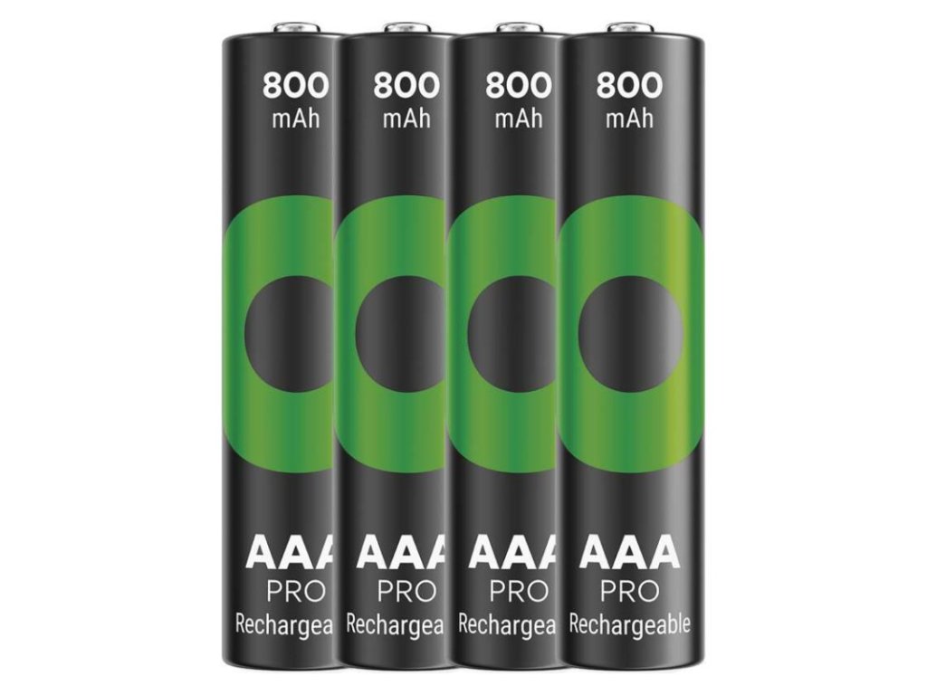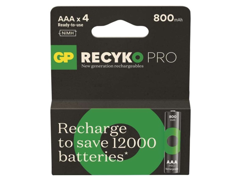 chemické složení: NiMH|hmotnost: 14 g|kapacita: 800 mAh|kategorie/řada: ReCyko Pro|max. skladovatelnost: neuvádí se|možnost nabíjení: ano|napětí: 1,2 V|počet nabíjecích cyklů: více než 1 500|prodejní obal: 4 ks, papírová krabička|provozní teplota: -20 °C až +50 °C|rozměr: 10,5 × 44,5 mm|typ: HR03 (mikrotužka, AAA)|velikost baterie: AAA|značka: GPObrázky jsou pouze ilustrativní.
