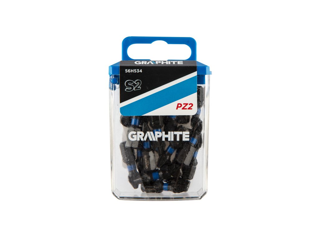Rázové bity, typ PZ2, celková délka 25 mm, ocel S2, pohon 1/4", 20 ks. Rázové bity GRAPHITE (obj. č. 56H534) Typ PZ2, celková délka 25 mm, jsou robustní bity určené pro práci se šroubováky nebo rázovými utahováky s vyšším krouticím momentem. Vyrobeno z vysoce kvalitní oceli S2, která má zvýšenou pružnost a mechanickou pevnost. Torzní zóna, která se otáčí při vysokém točivém momentu, snižuje přenos síly, čímž se zvyšuje odolnost bitu proti zlomení a několikanásobně se prodlužuje jeho životnost. Pracovní hrot bitu zaručuje dokonalé uchycení. Pohodlný plastový box umožňuje snadné skladování bitů. Značka GRAPHITE nabízí široký sortiment elektrického nářadí, které vyhovuje potřebám profesionálů.Obrázky jsou pouze ilustrativní.