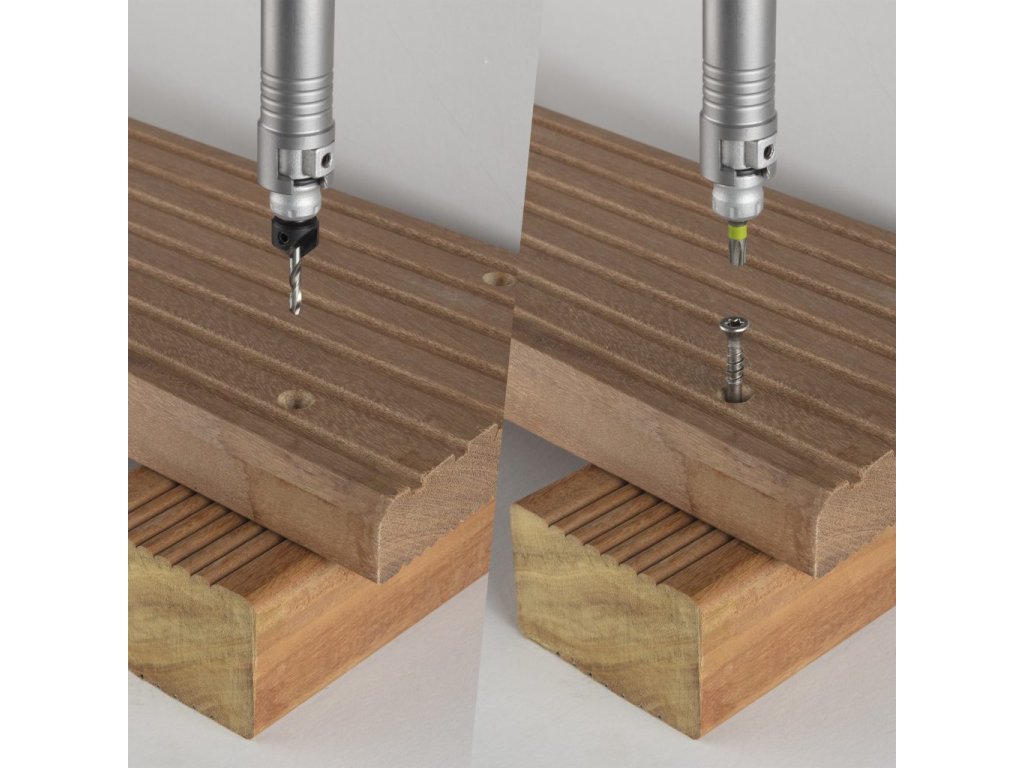stroj: akumulátorové šroubováky a vrtačky • řešení s dvojitým výměnným držákem pro vrtání, zahlubování a sešroubování • oboustranně osaditelný držák nástrojů vhodný pro šestihranné nástroje Ľ" • ideální pro vícestupňové pracovní postupy • držák bitů pro rychlou výměnu nástroje otočením držáku nástroje • obsah: 1 x uchycení pro dvojitý výměnný držák, se 3-hrannou stopkou 1 x dvojitý výměnný držák 1 x předvrták se záhlubníkem 1 x bit, Torx TX 25 1 x šestihran - klíč, SW 2 • samostatné příslušenství: 3083000, 3084000, 3085000 4006885308206 EAN:4006885308206 Kontaktní informace výrobce/dovozce: wolfcraft GmbH Wolffstraße 1 56746 Kempenich, Germany Tel: +49 2655 510 info@wolfcraft.com www.wolfcraft.comObrázky jsou pouze ilustrativní.