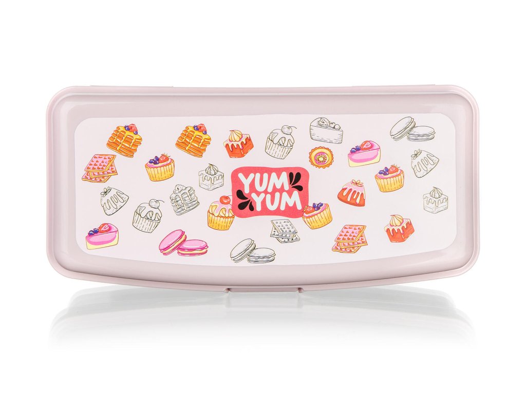 Box svačinový 20 x 9,5 x 5,5 cm, YUM, s klick uzávěrem, PH RŮŽ. rozměry: 20 x 9,5 x 5,5 cm materiál: plast barva: růžová Dětský svačinový box s motivem YUM je vhodný na svačinu do školy i na výlety. Díky jeho tvaru do něho můžete dát rohlík nebo banán.Obrázky jsou pouze ilustrativní.