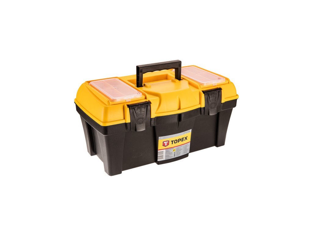 Box na nářadí 18", s organizéry, (DxŠxV) 44 x 22 x 22 cm, plastová rukojeť, plastové svorky Lehký a praktický box na nářadí TOPEX z odolného plastu. Opatřen 2 praktickými pořadači pro uskladnění drobných prvků a pohodlnou rukojetí umožňující přenášení. Značka TOPEX je určena pro domácí kutily.Obrázky jsou pouze ilustrativní.