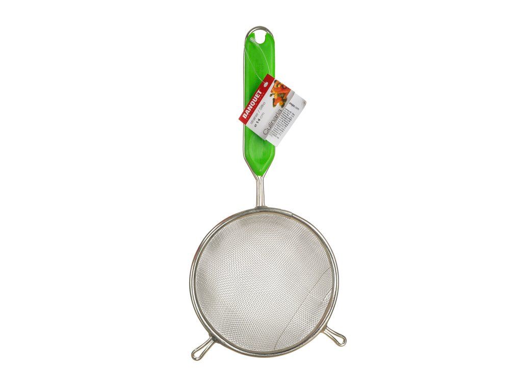 Sítko 14 cm, kov. + PH, CULINARIA. průměr: 14 cm materiál: pocínovaný kov, držadlo s plastovou vložkou ABS barva: zelená hustota mřížky: 1 x 1 mm počet oček: 15 na cm2 Sítko CULINARIA je vhodné na cezení nejrůznějších tekutin a nápojů.Obrázky jsou pouze ilustrativní.