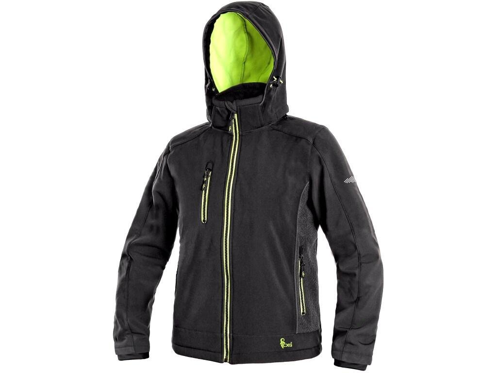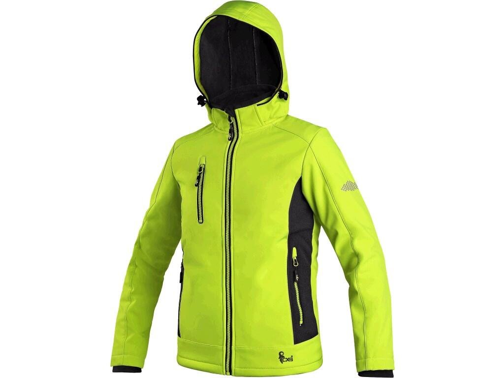 Dětská softshellová bunda, odolná proti vodě a větru, odepínací kapuce, stahování v dolním okraji, rukávy do gumičky, reflexní doplňky, TPU membrána, odolnost materiálu proti průniku vody (mimo oblast švů a mimo materiálu kolem kapes) 10 000 mm, paroObrázky jsou pouze ilustrativní.