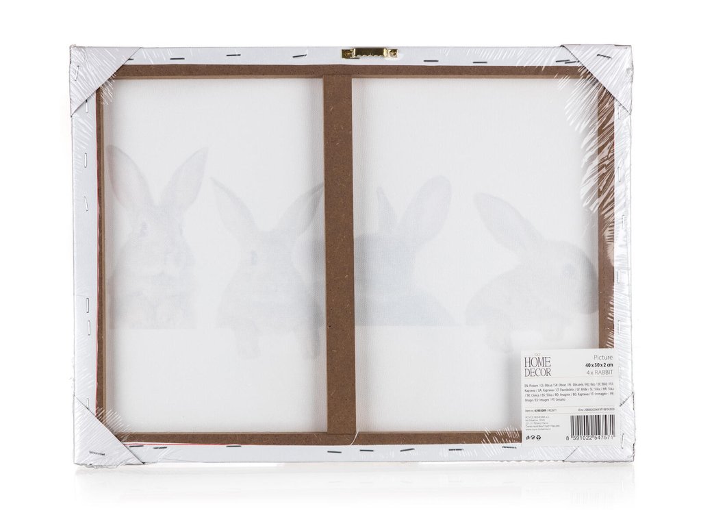 Obraz 4 KRÁLÍCI, 40 x 30 x 2 cm. rozměry: 40 x 30 x 2 cm Obraz 4 x RABBIT je vhodná dekorace pro každý interiér. V nabídce máme canvas obrazy s různými populárními motivy.Obrázky jsou pouze ilustrativní.