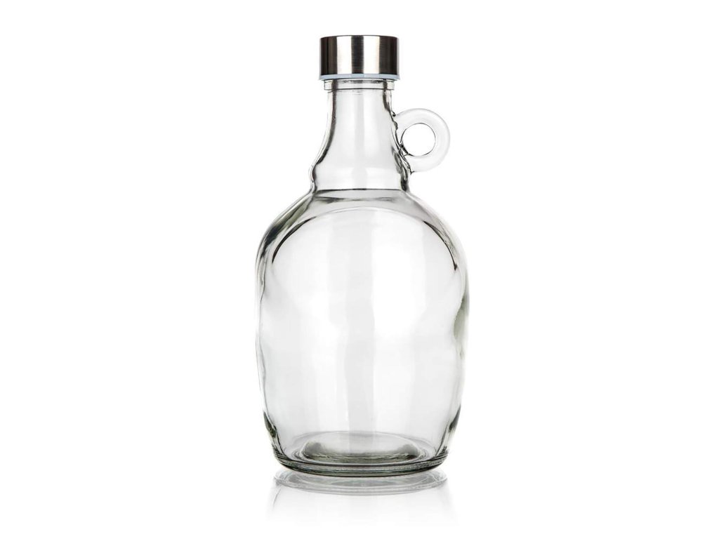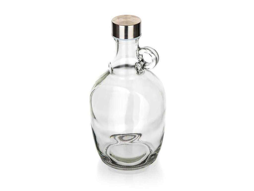 Demižon 1,1 l, DECLAN, s víčkem. objem: 1,1 l materiál: sklo, víčko - plast, kov Skleněný demižon s víčkem na závit je vhodný k uskladnění pálenky, lihovin, domácích sirupů a šťáv.Obrázky jsou pouze ilustrativní.