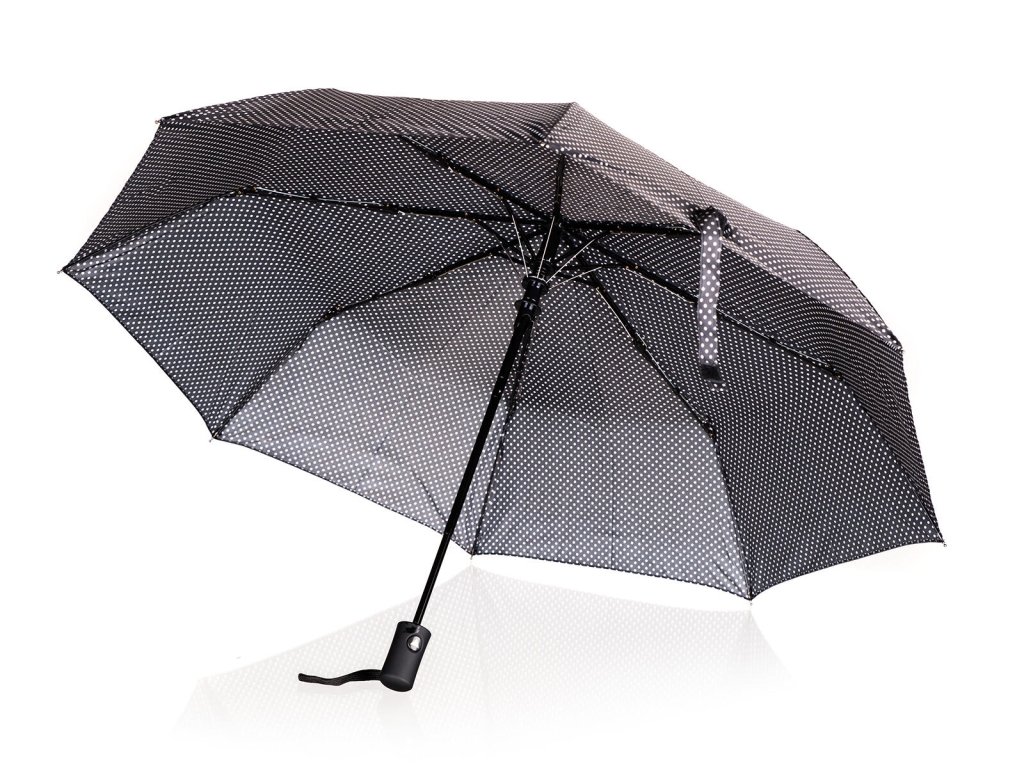 Deštník 52 cm, skládací ČER s puntíky. průměr: 52 cm barva: černá s puntíky Deštník skládací 52 cm v černé barvě s puntíky, slouží k ochraně proti dešti a přímému slunci. Je vyroben z nepromokavého materiálu polyester. Má ochranu proti poškození větrem, automatické otevíraní a je skládací pro snadné uskladnění.Obrázky jsou pouze ilustrativní.