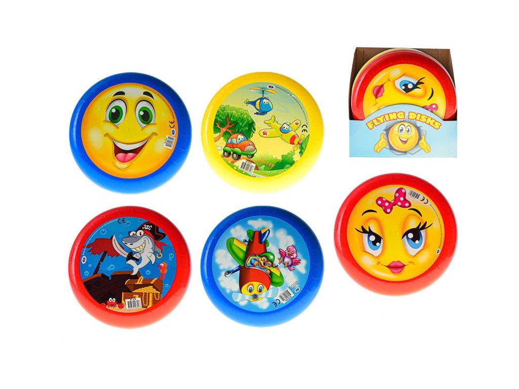 (BAL:24/192ks) S veselým plastovým házecím diskem se zabavíte venku i doma.Disk skvěle létá a ještě lépe se chytá.3 barvy - 5 motivů (smajlík s mašlí, vozidla, letadlo, žralok-pirát, smajlík)Rozměry: 23 x 3cm. Vhodné pro děti od 10 měsíců.Barva: modrá, oranžová, žlutá, zelená.Prodej po 24ks v boxu. Rozměr boxu: 23,5 x 23,5 x 20cm.Cena za jeden kus.Obrázky jsou pouze ilustrativní.