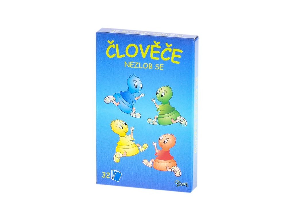 (BAL:1/200ks) Hrací karty ČLOVĚČE NEZLOB SE.Hrací karty na hru: Člověče nezlob se. Rozměry karet 7x10,5x1,5cm 31ks v krabičce.Balení obsahuje 32 karet.Vhodné pro děti od 3 let.Balení: papírová krabička.Obrázky jsou pouze ilustrativní.