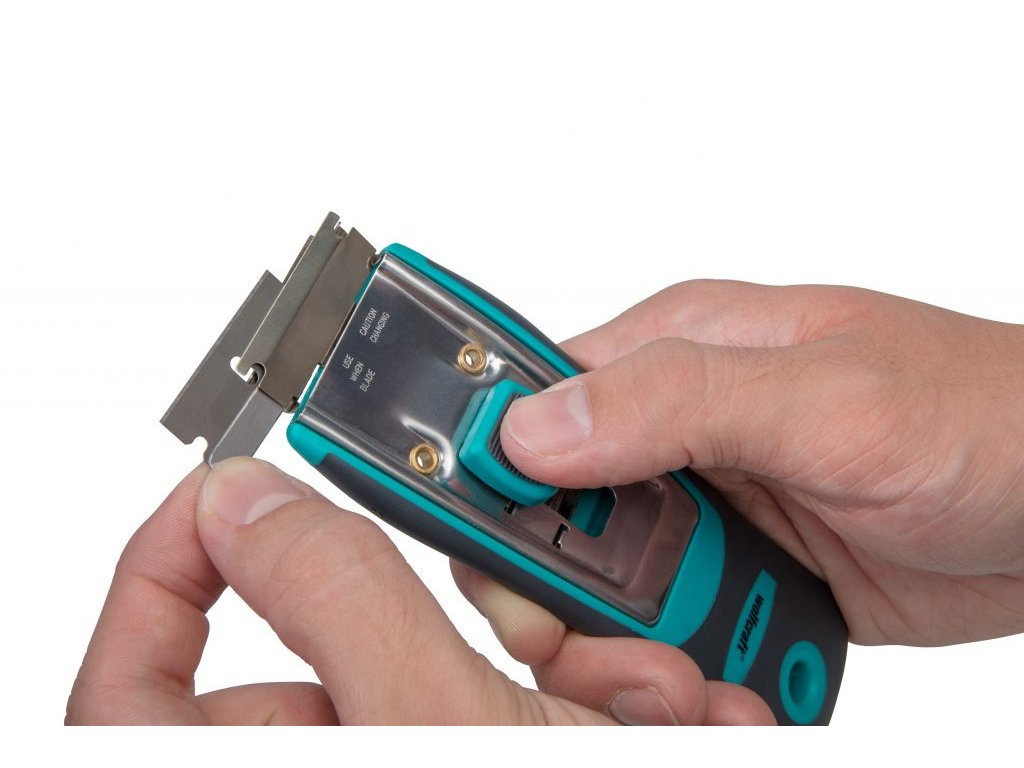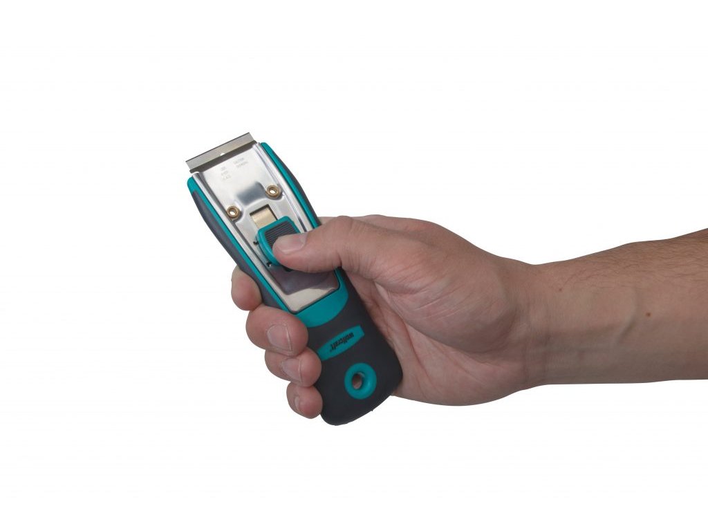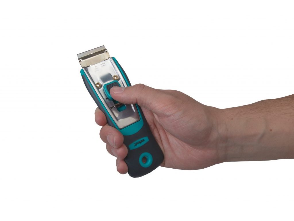K profesionálnímu čištění hladkých povrchů • plastové tělo s kovovou výztuží a ergonomickou měkkou zónou pro komfortní manipu laci • robustní kovové vedení čepele pro spolehlivý nepřetržitý provoz • speciální uchycení umožňuje výměnu čepelí bez použití nástrojů • kompatibilní se všemi standardními 38mm škrabkovými čepelemi pro dlouhou opako vanou použitelnost • balení: připevněná na kartě • samostatné příslušenství: 4126000 4006885410008 EAN:4006885410008 Kontaktní informace výrobce/dovozce: wolfcraft GmbH Wolffstraße 1 56746 Kempenich, Germany Tel: +49 2655 510 info@wolfcraft.com www.wolfcraft.comObrázky jsou pouze ilustrativní.