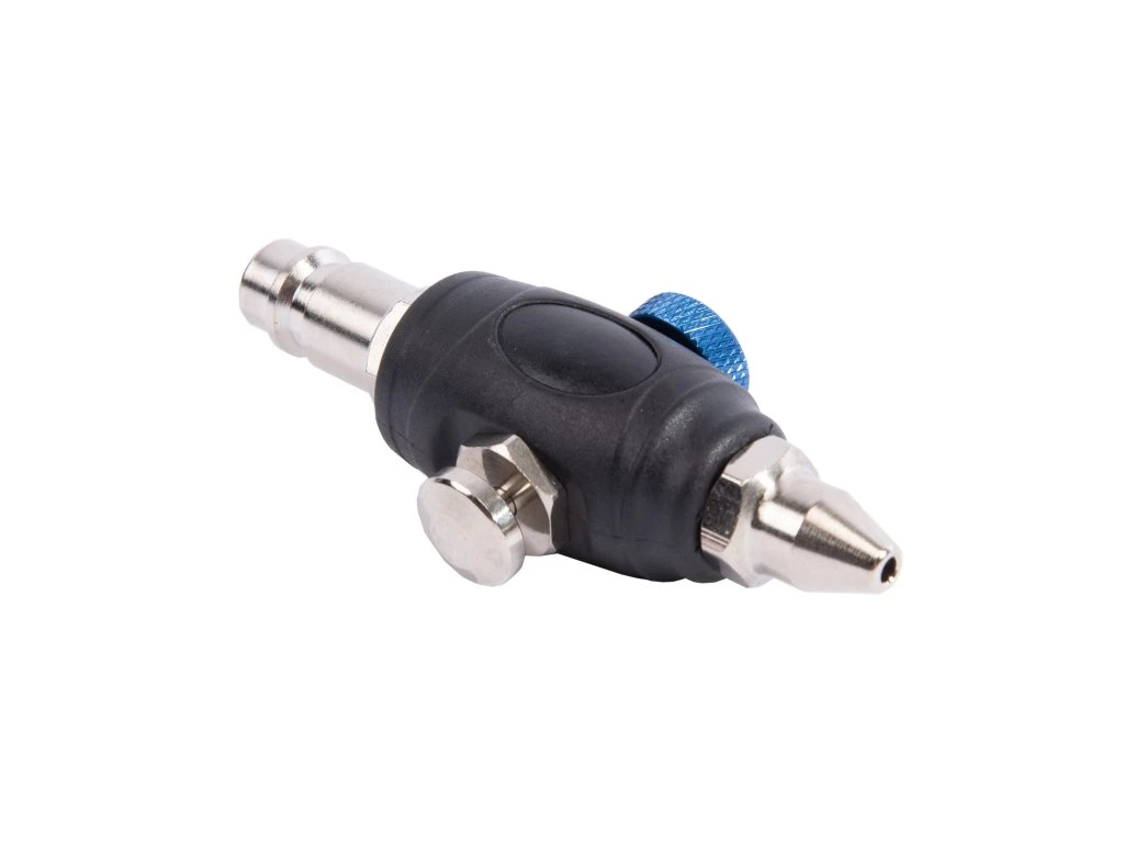 Mini vzduchová ofukovací pistole s tlačítkem 1/4” slouží k čištění pracovních ploch, strojů a drobných komponent stlačeným vzduchem až do tlaku 6,3 bar. Tělo ze sklolaminátu je pevné, odolné proti opotřebení a dobře padne do ruky při běžné údržbě. Ovládací tlačítko poskytuje plynulé řízení průtoku vzduchu.Obrázky jsou pouze ilustrativní.