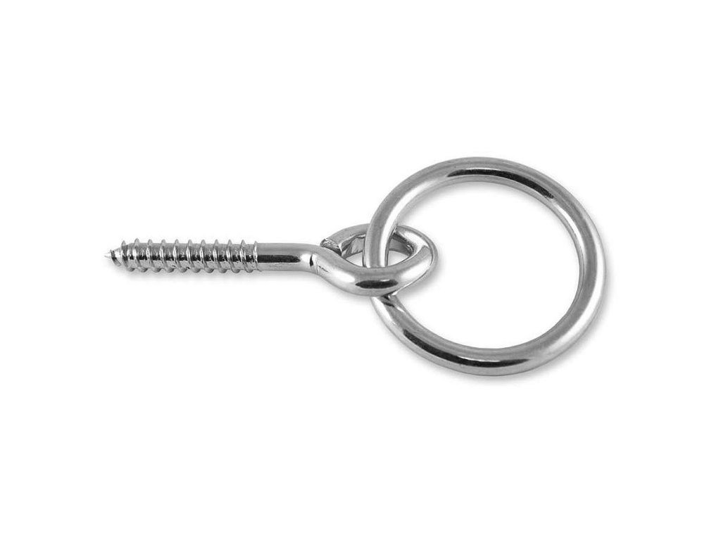Ocelový kroužek připevněný na oku s vrutem pro vnitřní i venkovní použití.