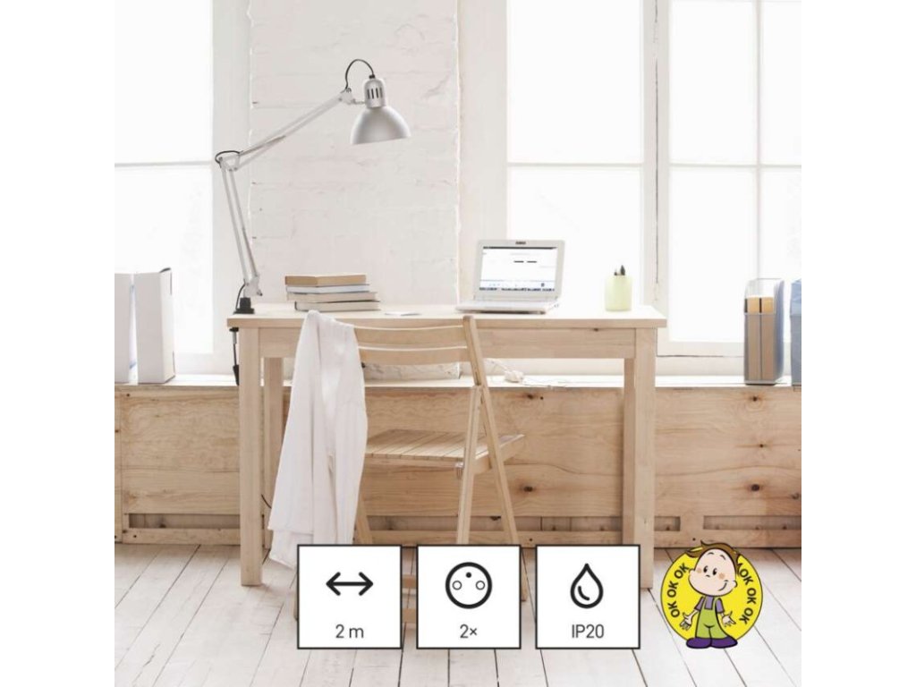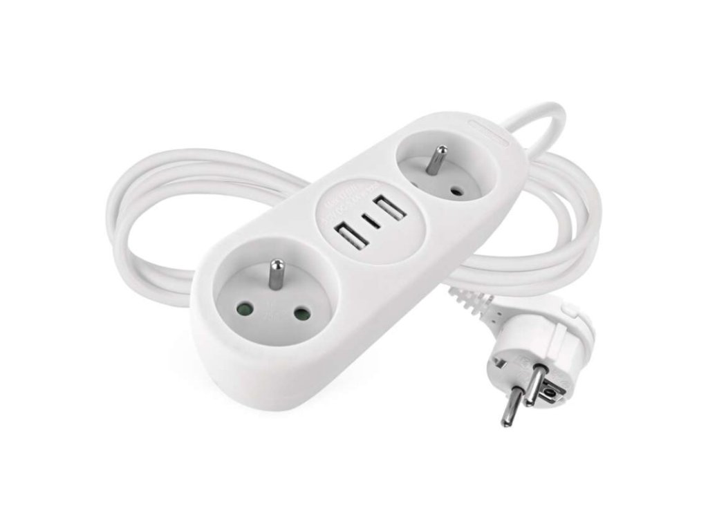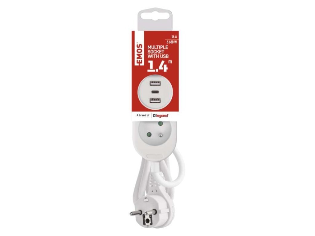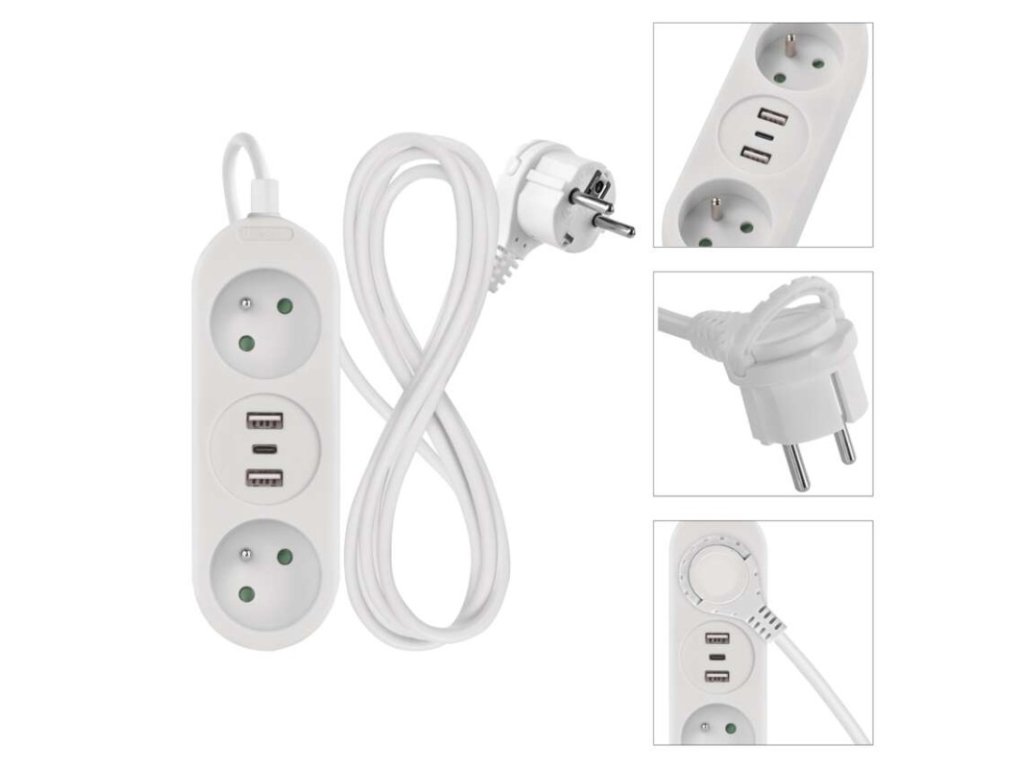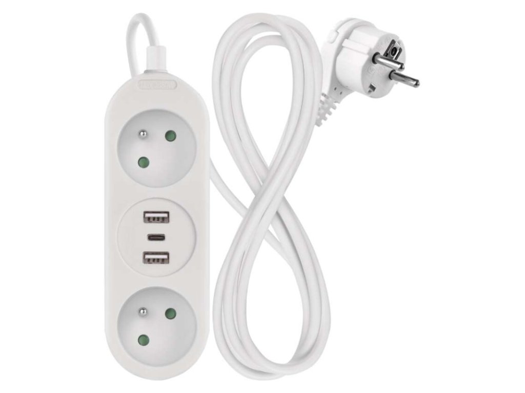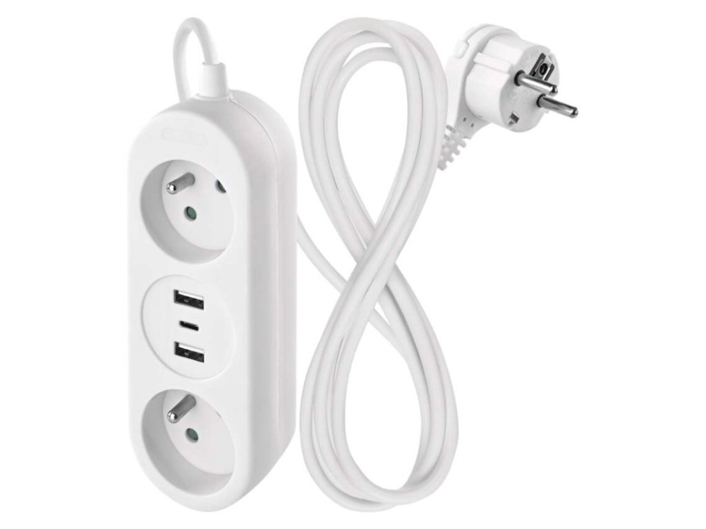 barva: bílá|další funkce: ne|délka: 1,4 m|dětské clonky: ano|jazyky aplikace: –|kompatibilita: –|krytí: IP20|materiál zásuvky a vidlice: plast|max. zátěž: 3 680 W|napětí: 230 V~|notifikace do mobilní aplikace: ne|ovládání hlasovými asistenty: ne|počet zásuvek: 2× 2P + PE|podporované OS: –|přenosová frekvence: –|prodejní obal: 1 ks, závěs|protokol: –|proud: 16 A max.|průřez vodiče: 1,5 mm²|typ izolace: PVC|USB výstup: 2× USB typ A + 1× USB typ C ; 5 V DC; total ∑ 3,4 A (17 W) max.|vodič: H05VV-F3G 1,5 mm²|vypínač: neObrázky jsou pouze ilustrativní.