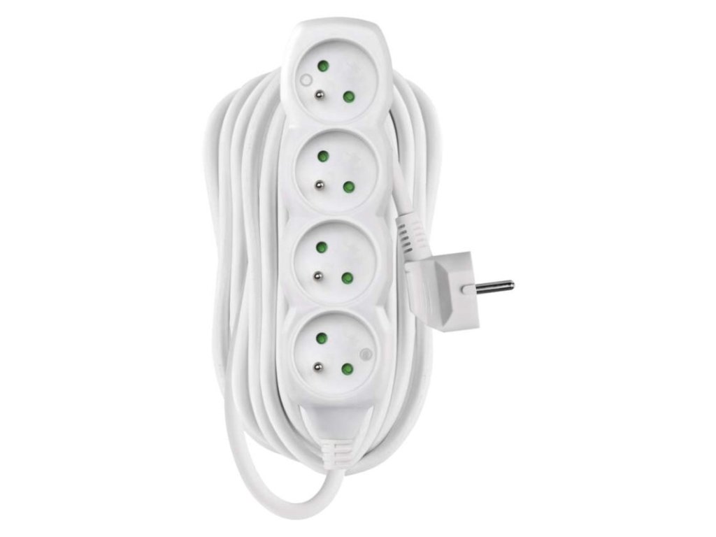 barva: bílá|délka: 10 m|dětské clonky: ano|krytí: IP20|materiál zásuvky a vidlice: plast|max. zátěž: 2 300 W|napětí: 250 V~|počet zásuvek: 4|prodejní obal: 1 ks, závěs|proud: 10 A max.|průřez vodiče: 1,0 mm²|typ izolace: PVC|USB výstup: ne|vodič: H05VV-F3G|vypínač: neObrázky jsou pouze ilustrativní.