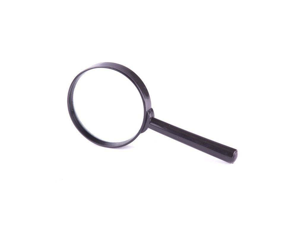 Lupa se skleněnou čočkou v pevném plastovém rámu 3x zvětšuje.