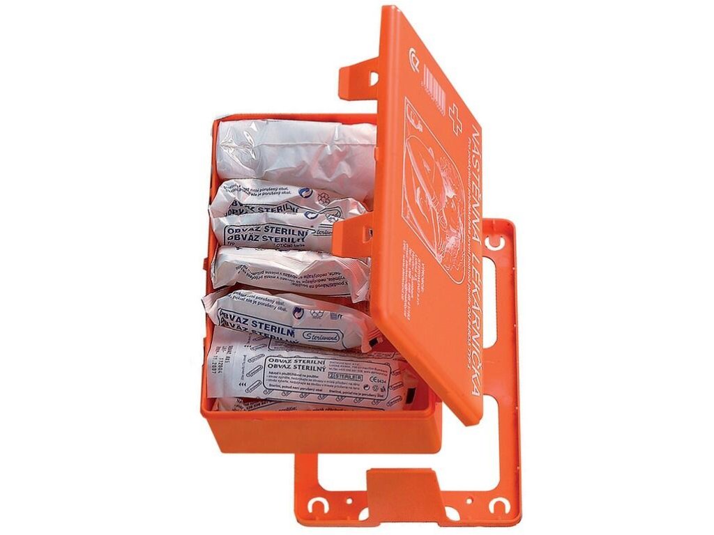 Plastová lékarnička s náplní bez léčiv, nástěnná, odnímatelná.Obrázky jsou pouze ilustrativní.