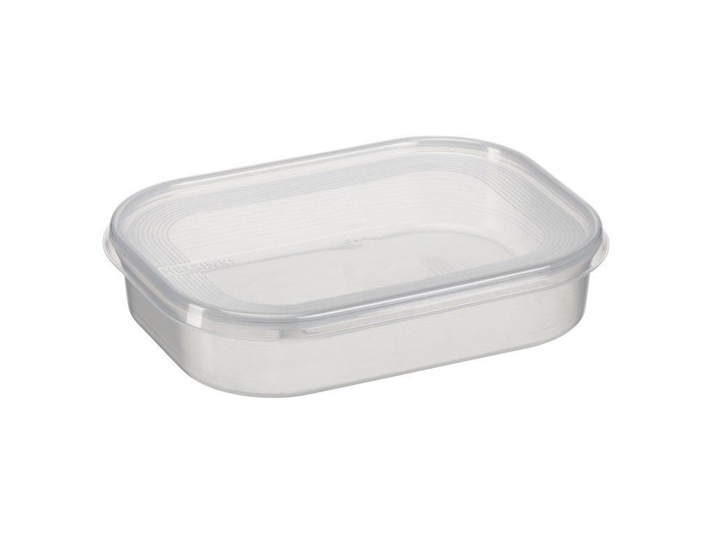 Dóza HELSINKI obdélníková, 0,7 l, 19 x 13,9 x 3,9 cm, PH. objem: 0,7 l rozměry: 19 x 13,9 x 3,9 cm materiál: plast - obdélníková dóza s víčkem pro uchovávání potravin - lehká údržba - vhodné do myčky ( - vhodná do ledničky nebo mrazáku na uchování různých potravin do - 20° C - teplotní odolnost od -20 do +100° C - vhodná do mikrovlnné trouby pro ohřev či rozmrazování potravin (vkládat bez víčka) - 100% utěsnění zabezpečuje vyšší odolnost potravin - stohovatelná 100% utěsněná dóza na potraviny zaručí delší čerstvost a životnost Vašich potravin a pokrmů. Díky všestrannému použití, ať už na mražení, uchovávání či na ohřev jídla, najde ve Vaší kuchyni maximální uplatnění.Obrázky jsou pouze ilustrativní.