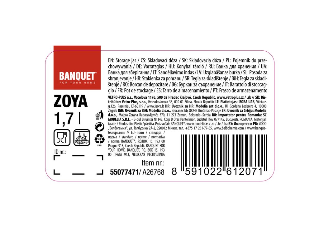 dóza s uchem 1,7l ZOYA PH