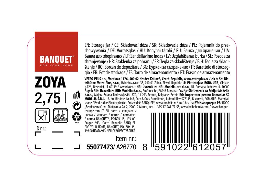 dóza s uchem 2,75l ZOYA PH