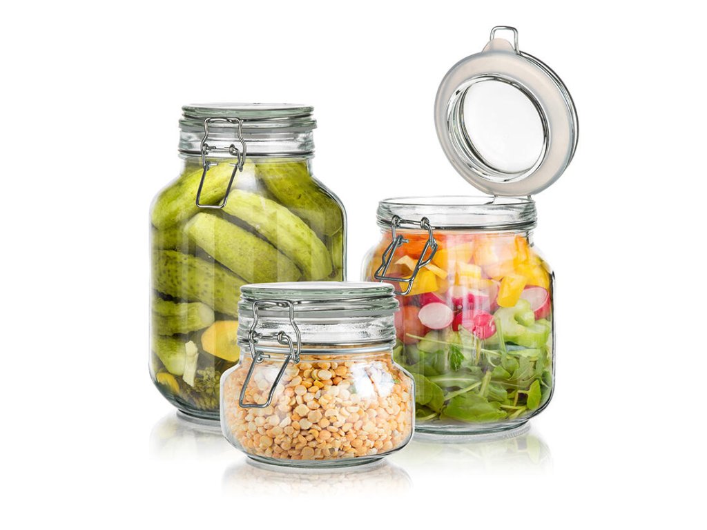 dóza hermetická hranatá 500ml skl. s patent.uzávěrem EREA