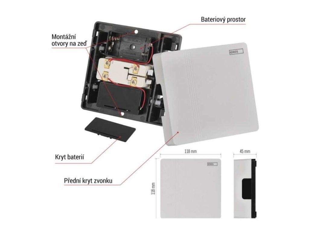 | rozměr zvonku: | 118 × 118 × 45 mm |
