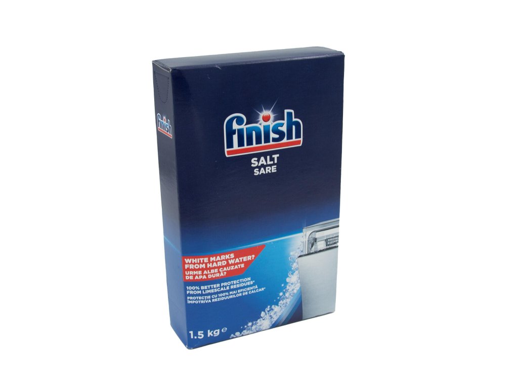 FINISH sůl do myčky 1,5 kg. hmotnost: 1,5 kg Sůl Finish chrání myčku před vodním kamenem a zvyšuje její čisticí výkon.Obrázky jsou pouze ilustrativní.