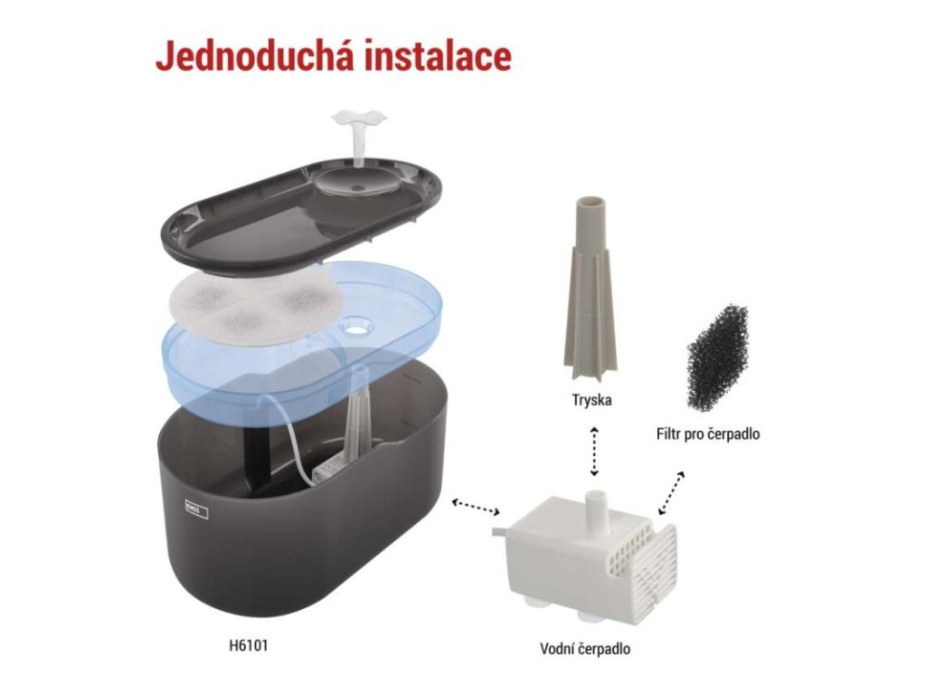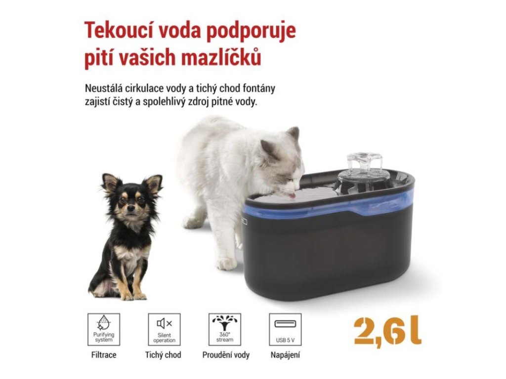 barva: šedá|další funkce: filtrace vody|detekce pohybu: –|detekce zvuku: –|doporučení: malá a střední plemena|funkce WebRTC: –|hlasová komunikace: –|instalační materiál: –|IR CUT: –|jazyky aplikace: –|jedna porce: –|kapacita: 2,6 l|kompatibilita: –|maximální úhel záběru kamery: –|napájení: 5 V/1 A|noční vidění: –|notifikace do mobilní aplikace: –|obsah balení: fontána, napájecí adaptér, přívodní kabel, čerpadlo, filtr k čerpadlu, bavlněný filtr, kartáček na čištění|ovládání hlasovými asistenty: –|podporované OS: –|přenosová frekvence: –|prodejní obal: 1 ks, krabice|protokol: –|průměr granulí: –|řada: –|rozlišení kamery: –|rozměr: 259 × 143 × 170 mm|typ produktu: vodní fontána|ukládání na cloud: –|ukládání na SD kartu: –|určení: vnitřní|vyvolání hovoru tlačítkem: –|záruční doba: 2 roky|zdroj součástí balení: anoObrázky jsou pouze ilustrativní.