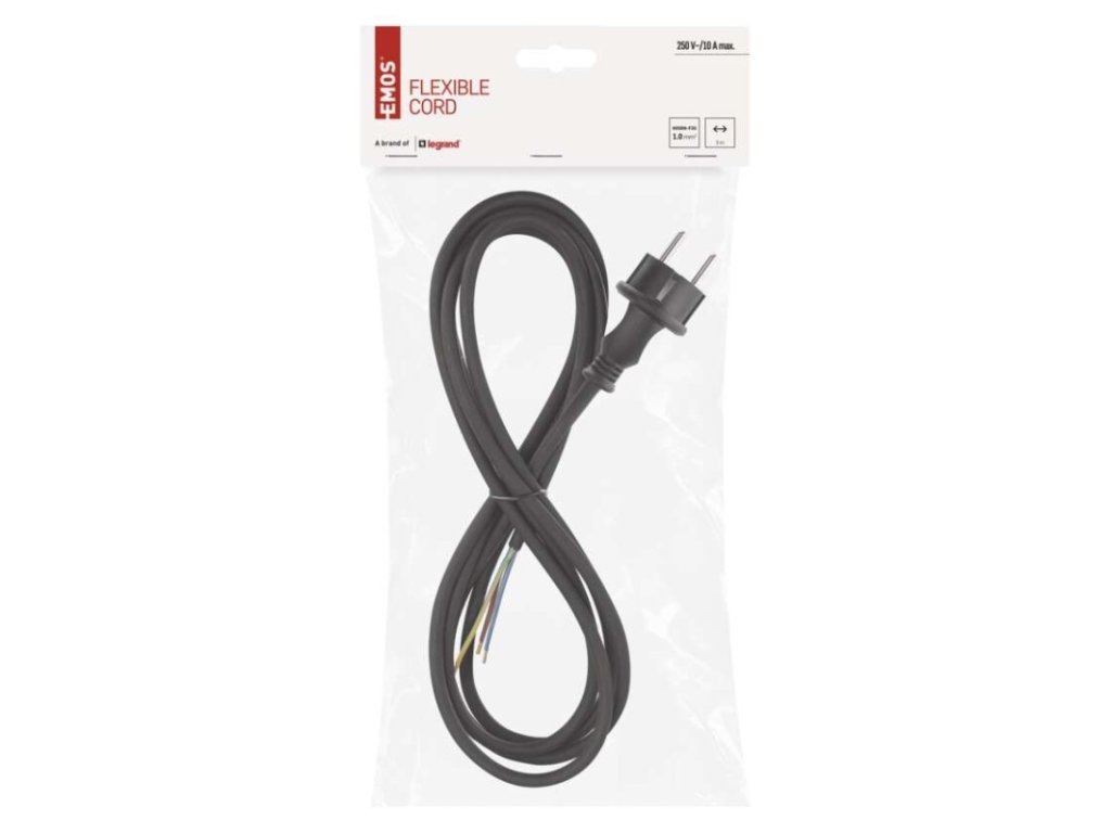 barva: černá|délka: 3 m|prodejní obal: 1 ks, závěs|průřez vodiče: 3× 1,0 mm²|typ: SY-11|typ izolace: guma/neopren|vodič: H05RN-F|vypínač: neObrázky jsou pouze ilustrativní.