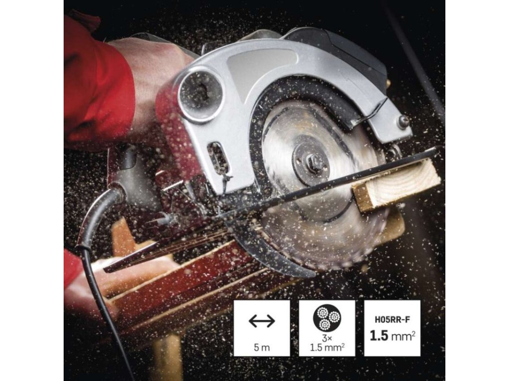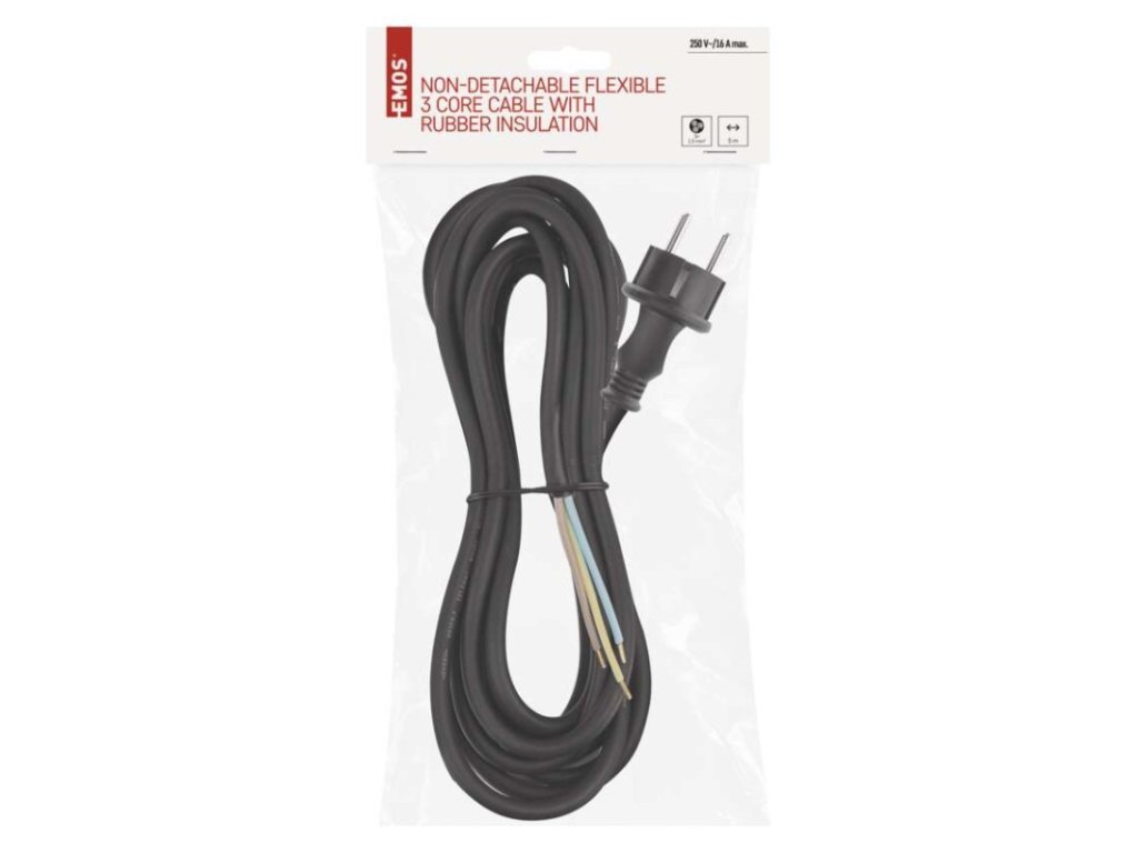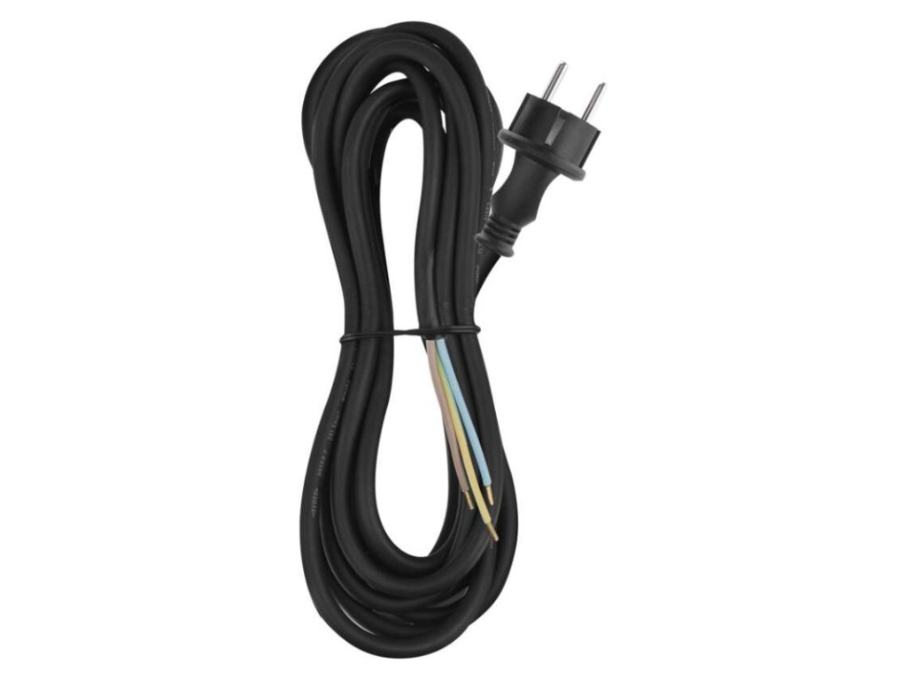barva: černá|délka: 5 m|prodejní obal: 1 ks, závěs|průřez vodiče: 3× 1,5 mm²|typ: SY-11|typ izolace: guma|vodič: H05RR-F|vypínač: neObrázky jsou pouze ilustrativní.