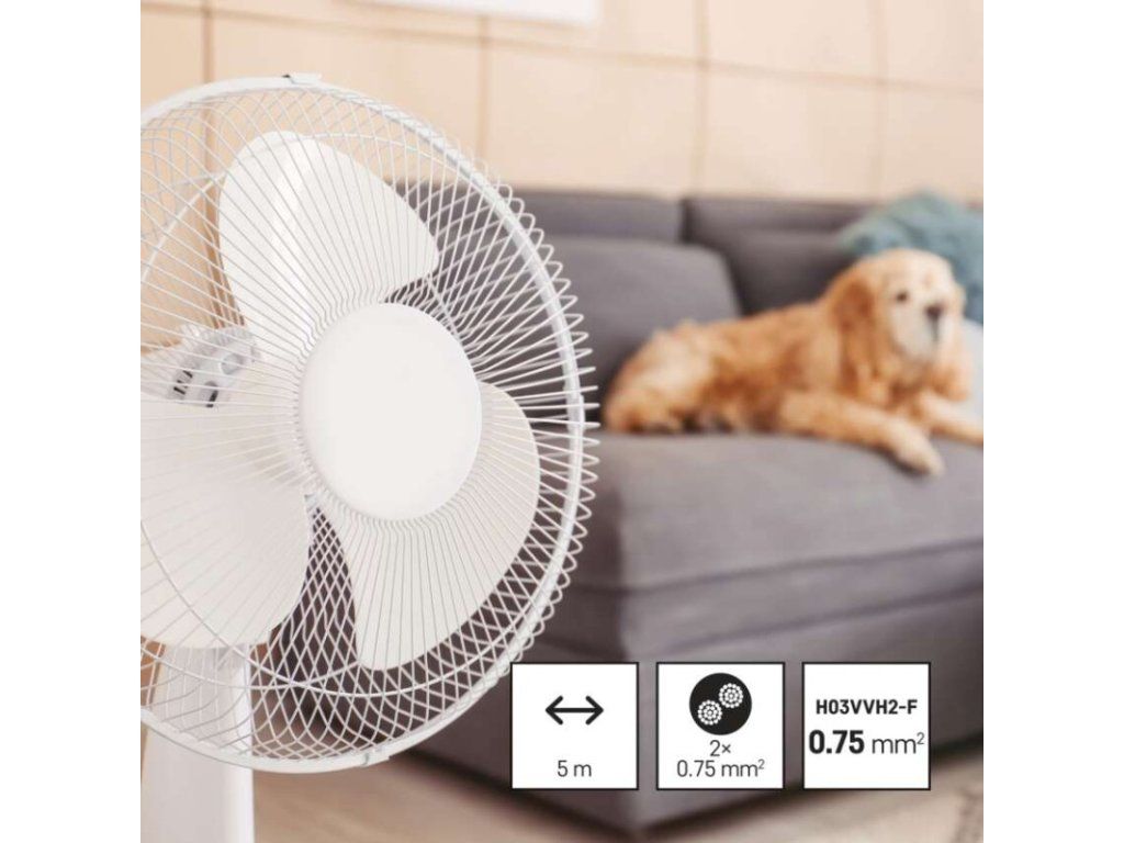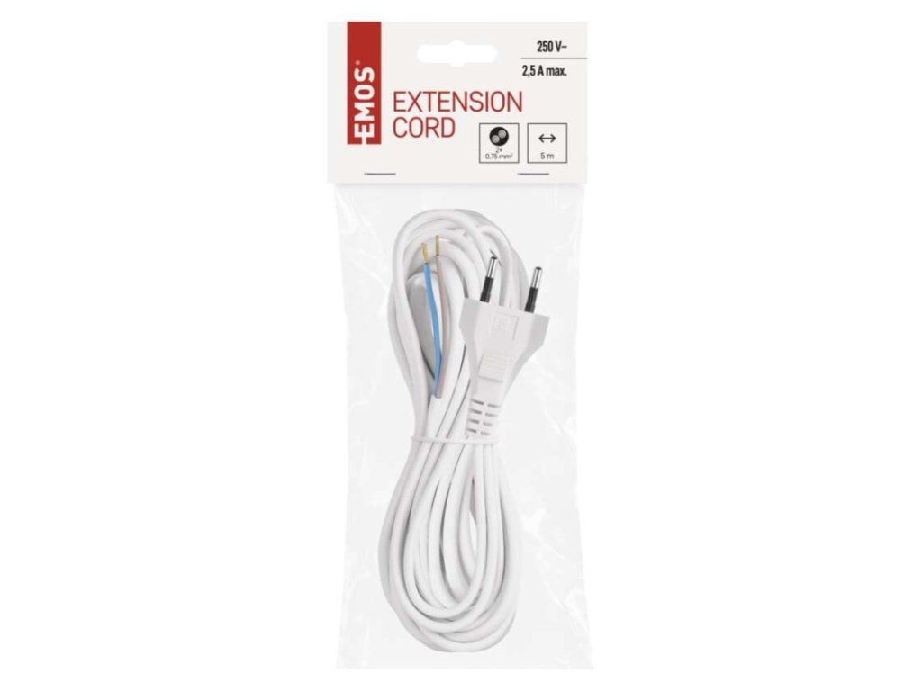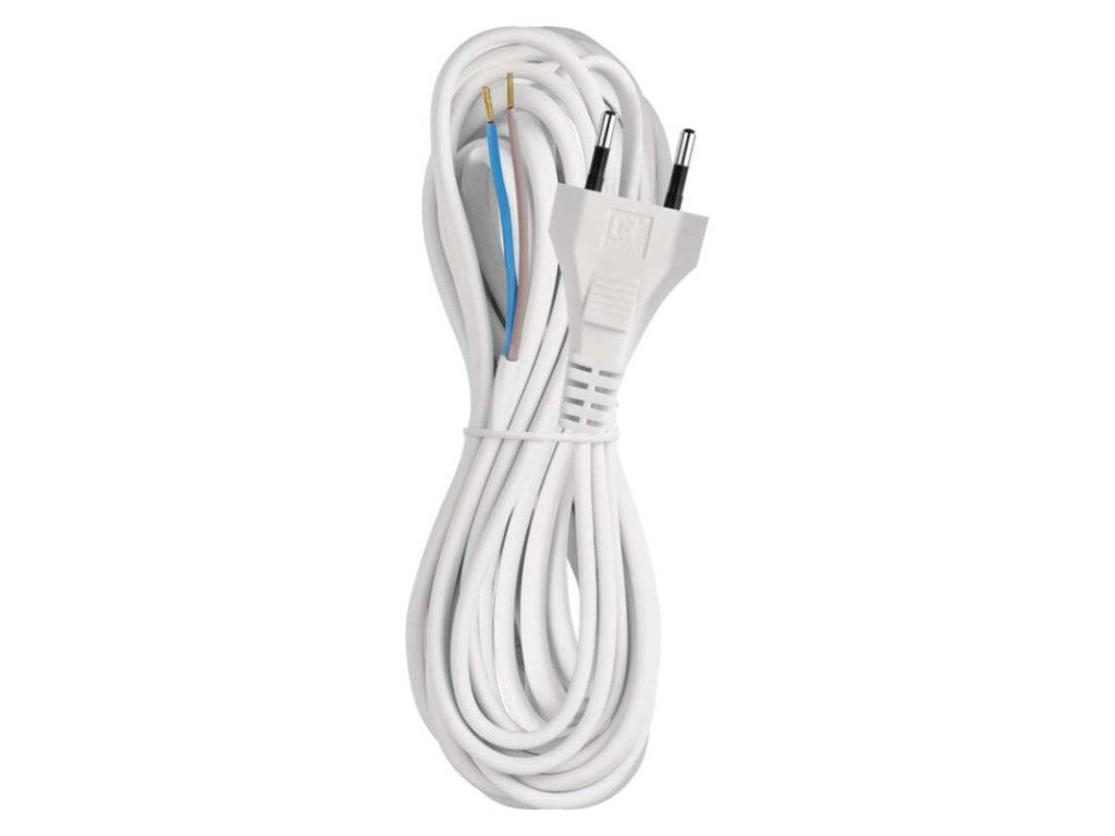barva: bílá|délka: 5 m|prodejní obal: 1 ks, závěs|průřez vodiče: 2× 0,75 mm²|typ: KF-H1 (HY020-F)|typ izolace: PVC|vodič: H03VVH2-F|vypínač: neObrázky jsou pouze ilustrativní.