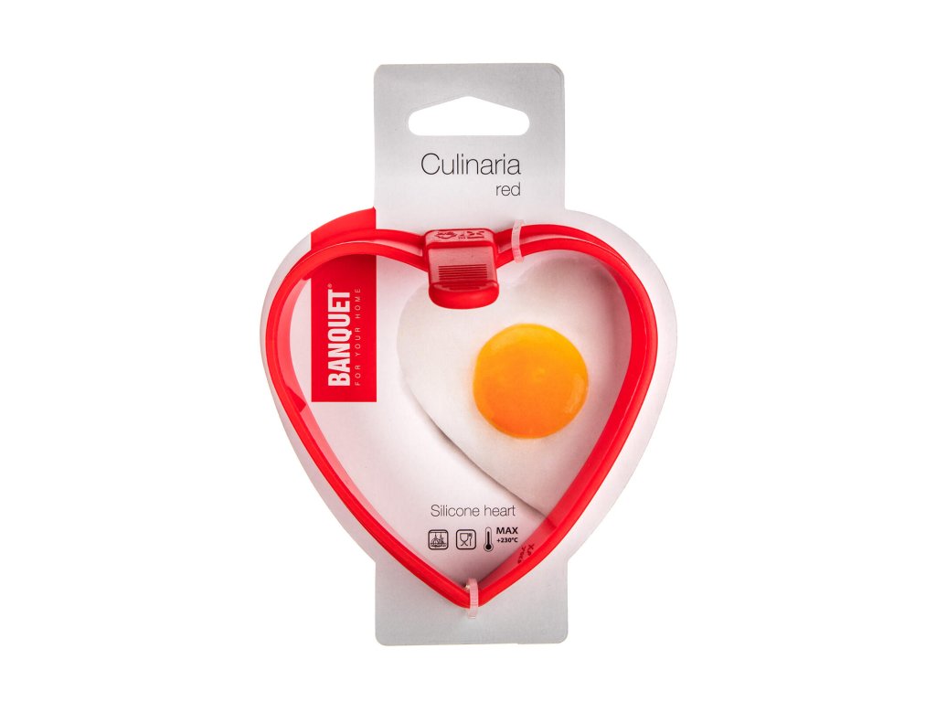 Formička na smažení SRDCE, silikon ČRV, CULINARIA. délka: 10 cm šířka: 10 cm výška:: 6 cm materiál: silikon barva: červená Silikonová formička na smažení CULINARIA red ve tvaru srdce, je pomocníkem při přípravě volského oka, apod. Formička je opatřena rukojetí pro bezpečnou manipulaci na horkém povrchu. Silikon je velmi populární materiál, který pro své jedinečné vlastnosti našel své uplatnění i v kuchyni. Vyrábí se z něj různé druhy forem na pečení, vály a válečky na těsto, stěrky, mašlovačky, různé druhy kuchyňské náčiní a mnohé další výrobky.Obrázky jsou pouze ilustrativní.