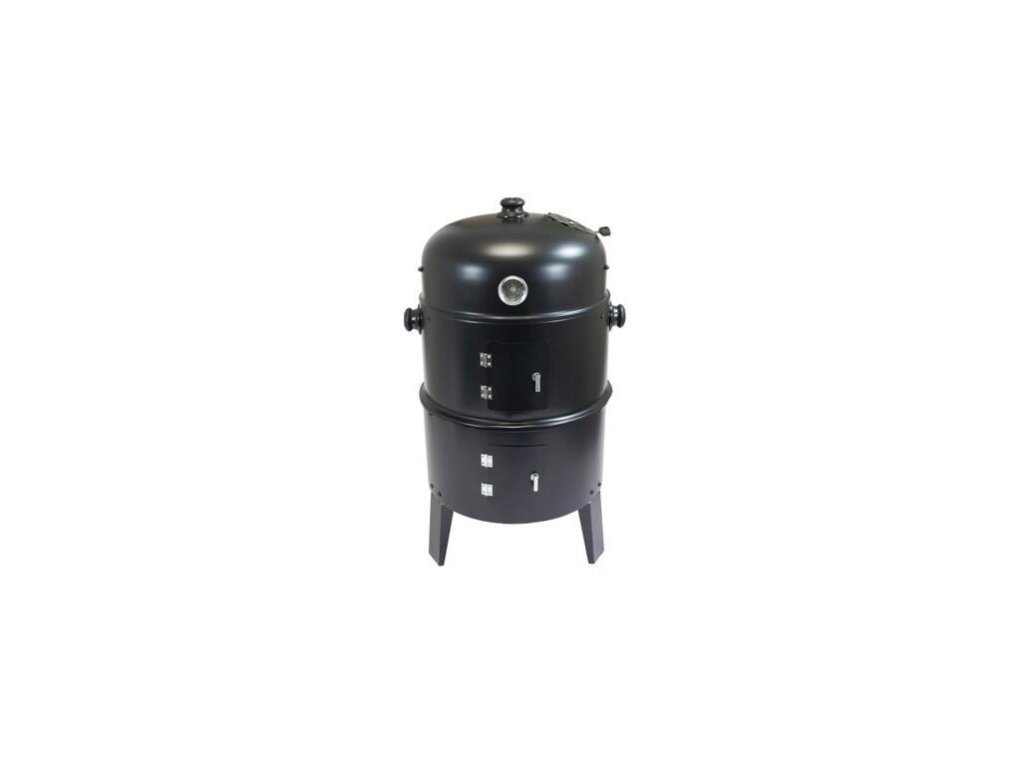 Gril multifunkční 3 v 1, pr. 40 cm,, výška 75 cm. průměr: 40 cm výška: 75 cm Multifunkční gril 3 v 1, s průměrem roštu 40 cm, ocení milovníci dobrého jídla. Gril 3 v 1 umožňuje udit, grilovat i opékat. Pokrm je tepelně připravován nad nádobou s vodní lázní pomocí tepla a dýmu. Tím nedochází ke vzniku zdraví škodlivých látek, které by se jinak dostávaly do pokrmů. Gril se skládá ze tří částí: ohniště, vyšší gril, uzavř. udírna. Dvě části mají dvířka pro přikládání a kontrolu ohně, vrchní část teploměr do 300 st. C, 2 tyče pro zavěšení uzených pokrmů a otvor pro vypouštění kouře.Obrázky jsou pouze ilustrativní.