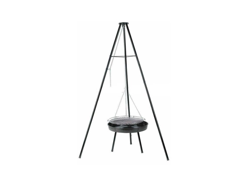 rozměry: pr. 54,5 x 156 cm ohniště: pr. 54,5 cm výška roštu: nastavitelná rošt: pr. 51 cm Grilovací trojnožka na dřevěné uhlí nebo brikety. Rošt je k trojnožce připojen pomocí řetízků, proto je výška roštu velmi snadno nastavitelná.Obrázky jsou pouze ilustrativní.