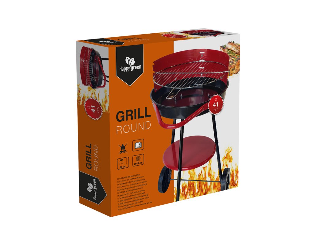 Gril ROUND pr. 41 cm, výška 84 cm ČRV / ČER. průměr: 41 cm výška: 84 cm barva: červená / černá Zahradní gril Happy Green, zástěna proti větru, plastová kolečka Gril ROUND je smaltovanou grilovací vanou a plastovými pojezdovými koly pro snadnou manipulaci. Gril využijete zejména při kempování, na chatách a chalupách.Obrázky jsou pouze ilustrativní.