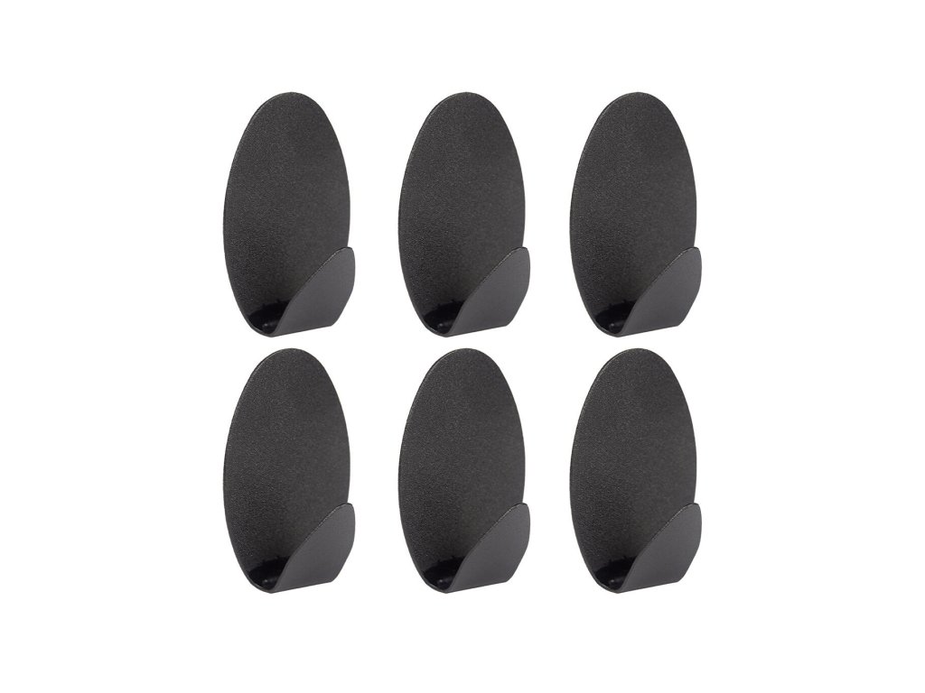 Háček samolepicí, oválný, ocel ČER (6 ks). rozměry (š x v): 3,6 x 5,3 cm materiál: ocel barva: černá balení: 6 ks Oválný samolepicí háček. Samolepicí háčky lze využít kdekoliv v domácnosti díky samolepicí pásce. Snadné a rychlé uchycení na jakýkoliv povrch.Obrázky jsou pouze ilustrativní.