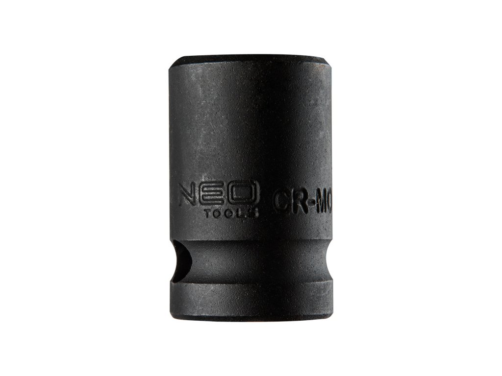 Rázové hlavice 1/2", 15 mm, CrMo ocel Úderná nástrčná hlavice 1/2" NEO. Vyrobena z odolné chrom-molybdenové oceli. Hrubší stěny nástrčné hlavice zaručují její vysokou odolnost. Značka NEO splňuje očekávání profesionálů.Obrázky jsou pouze ilustrativní.