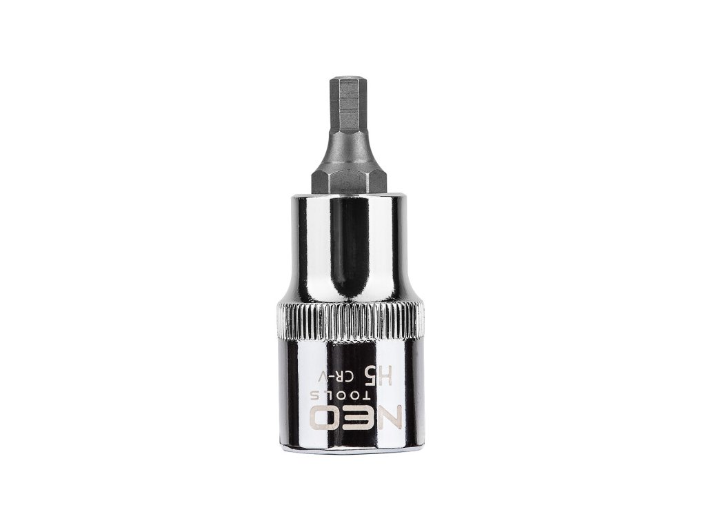 Šestihranná koncovka na 1/2", H5 x 55 mm, CrV ocelová koncovka, S2 ocelový bit, certifikát TÜV M+T, záruka 25 let Šestihranný hrot na 1/2" nástrčné hlavici NEO (ref. 08-770) velikosti H5, délky 55 mm, podle DIN 7422.Hlavice je vyrobena z odolné chrom-vanadiové oceli. Šestihranný konec z vysoce kvalitní legované oceli S2. Kvalita nářadí potvrzená certifikátem TÜV a 25letou zárukou výrobce. Značka NEO splňuje očekávání profesionálů.Obrázky jsou pouze ilustrativní.