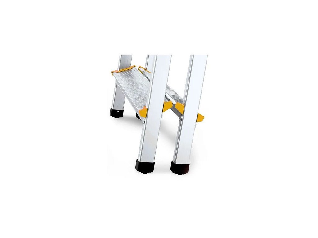 Robustní konstrukce žebříku z odolného hliníku.