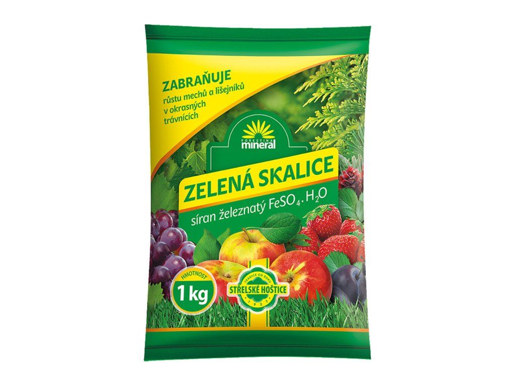 Skalice ZELENÁ 1 kg. hmotnost: 1 kg složení: Fe 29%, S 31,5 % Skalice zelená - síran železnatý - odstraňuje příčiny akutního nedostatku železa v rostlinách /chloróza/. Skalice zelená - železo je důležitou součástí listové zeleně - chlorofylu. Jeho nedostatek se zejména u jádrovin, peckovin, jahodníku a révy vinné projevuje jako tzv. chloróza (žloutenka). Hnojivo má kyselou reakci. Síran železnatý umožňuje hnojit postřikem na list. Hnojivo má herbicidní vlastnosti, nesmí být proto použito jinak, než je uvedeno na etiketě! Síran železnatý v kombinaci se síranem amonným a trávníkářským pískem se také používá k hubení mechů a lišejníků v okrasných trávnících. POZOR - může způsobit skvrny na dlažbě. Používejte pouze na určené plochy. Použití: Hnojení postřikem na list provádíme brzy ráno nebo večer nikoliv za plného slunce. Dávkování: Hnojení postřikem 2 - 4 g / 1 l, k potlačení mechu a lišejníku 30 - 50 g / 5 l vody. Používejte přípravky na ochranu rostlin bezpečně. Před použitím si vždy přečtěte označení a informace o přípravku.Obrázky jsou pouze ilustrativní.