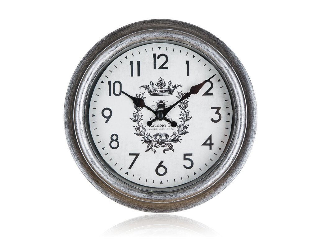 Hodiny nástěnné pr. 22 cm, CROWN. průměr: 22 cm šířka: 4,2 cm Nástěnné kulaté hodiny CROWN, s celoplošným dekorem. Hodinový strojek je napájen jedním kusem baterie AA (není součastí balení). Produkt je ideální dekorací do vašeho bytu nebo stylové kuchyně.Obrázky jsou pouze ilustrativní.