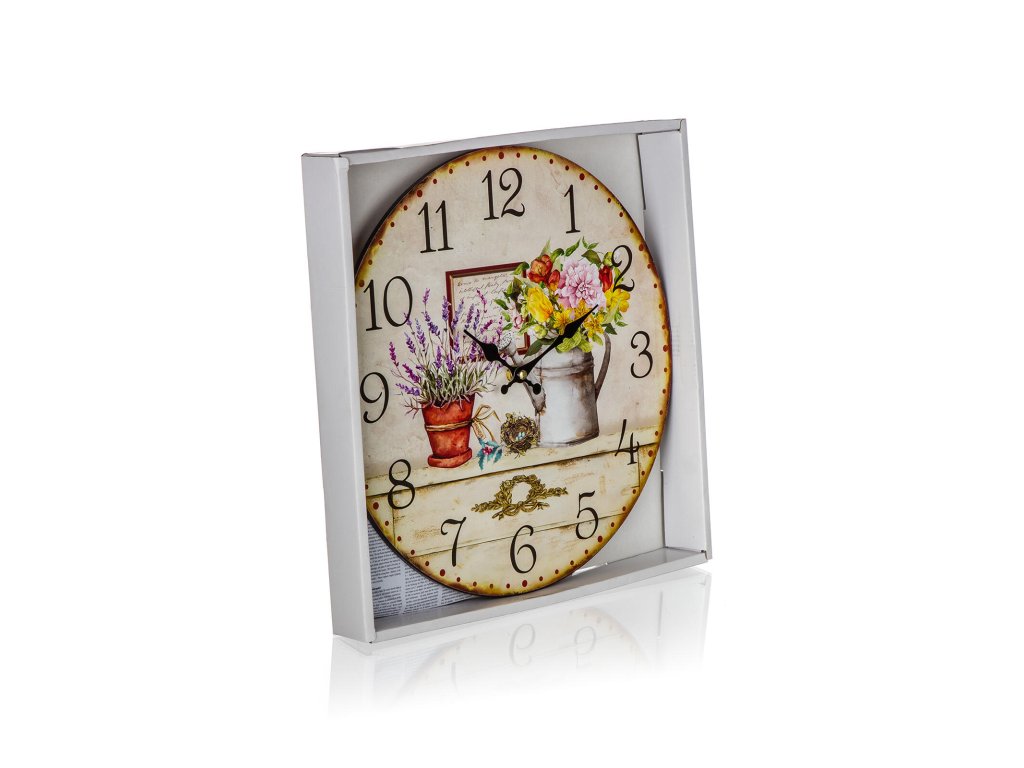 Hodiny nástěnné pr. 34 cm, FLOWER. průměr: 34 cm Nástěnné kulaté hodiny FLOWER, s celoplošným dekorem. Hodinový strojek je napájen jedním kusem baterie AA (není součastí balení). Produkt je ideální dekorací do vašeho bytu nebo stylové kuchyně.Obrázky jsou pouze ilustrativní.