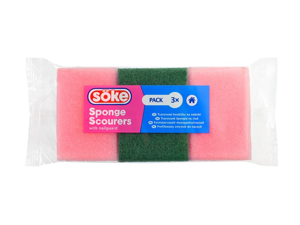 Houbička na nádobí tvarovaná 9,5 x 7 x 4,5 cm, mix barev (3 ks). rozměry: 9,5 x 7 x 4,5 cm mix barev: růžová, modrá balení: 3 ks Sada houbiček na nádobí BRILANZ frézované, účinné mytí talířů a hrnců se zelenou drátěnkou.Obrázky jsou pouze ilustrativní.