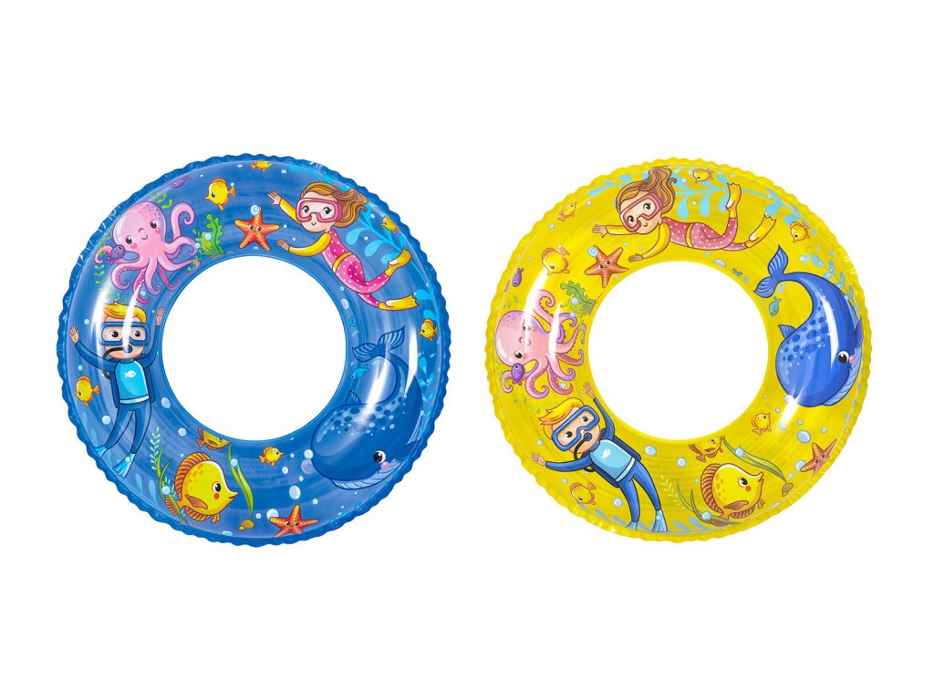 Kruh nafukovací 60 cm SEA WORLD, mix. průměr: 60 cm materiál: vinyl mix barev: žlutá, modrá Nafukovací kruh SEA FISH je určen pro děti ve věku 4 - 8 let. Nafukovací kruh je praktický pomocník pro vaše dítě při hrátkách ve vodě.Obrázky jsou pouze ilustrativní.