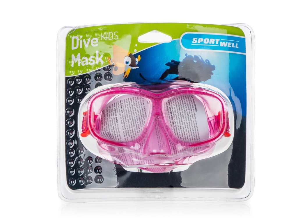 Maska potápěčská dětská SPORTWELL, mix barev. mix barev: růžová, modrá Potápěčská dětská maska SPORTWELL je skvělou pomůckou pro výuku plavání i zábavu ve vodě. Dělený zorník masky je z polykarbonátového skla a lícní maska a popruh z PVC.Obrázky jsou pouze ilustrativní.