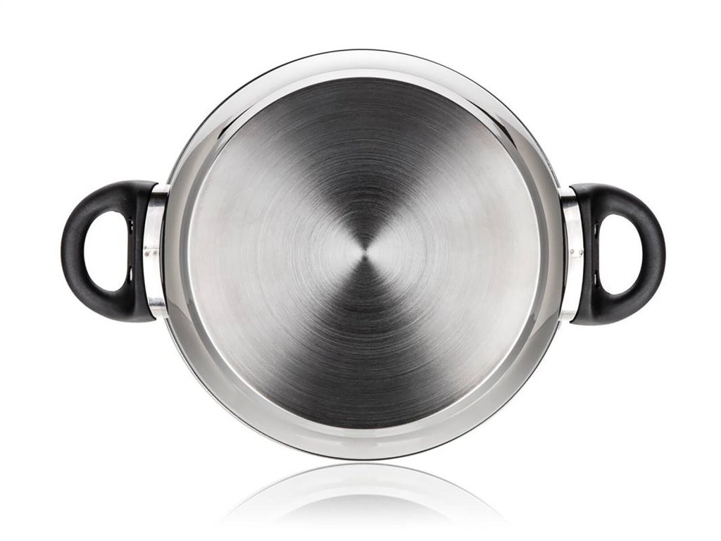 Hrnec 18 cm, se skleněnou poklicí, 1,7 l, nerez, SUPER VALUE. průměr: 18 cm výška: 9 cm objem: 1,7 l materiál: nerez, skleněná poklice tloušťka stěny: 0,38 mm tloušťka dna: 2,76 mm Nerezový hrnec se skleněnou poklicí SUPER VALUE pro přípravu různých pokrmů. Vnější i vnitřní povrchová úprava v lesku. Bakelitový knob i držadla. Hrnec lze používat na všechny typy varných desek. elektrika: ano plyn: ano sklokeramika: ano indukce: ano myčka: anoObrázky jsou pouze ilustrativní.